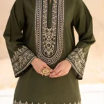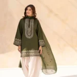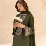 Lubaba Luxury Namal 3-Piece Stitched Cotton Suit – Olive Green